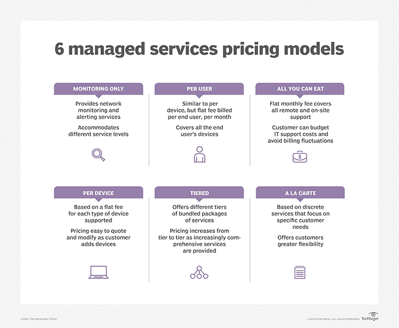 Giá cả là một yếu tố của chiến lược kinh doanh xứng đáng được chú ý đặc biệt. Mô hình định giá của MSP – Managed Service Provider cung cấp cơ sở cho doanh thu định kỳ. Ngoài ra, giá cả phù hợp sẽ giúp khách hàng dễ dàng đánh giá và tiêu thụ các dịch vụ của nhà cung cấp hơn. Một MSP – Managed Service Provider có thể chọn từ ít nhất sáu mô hình định giá phổbiến , chạy gam màu từ các gói đơn giản đến các gói bao gồm tất cả. Mô hình nào hoạt động cho một công ty riêng lẻ sẽ phụ thuộc vào phạm vi dịch vụ mà họ dự định bán và cơ sở khách hàng dự định.