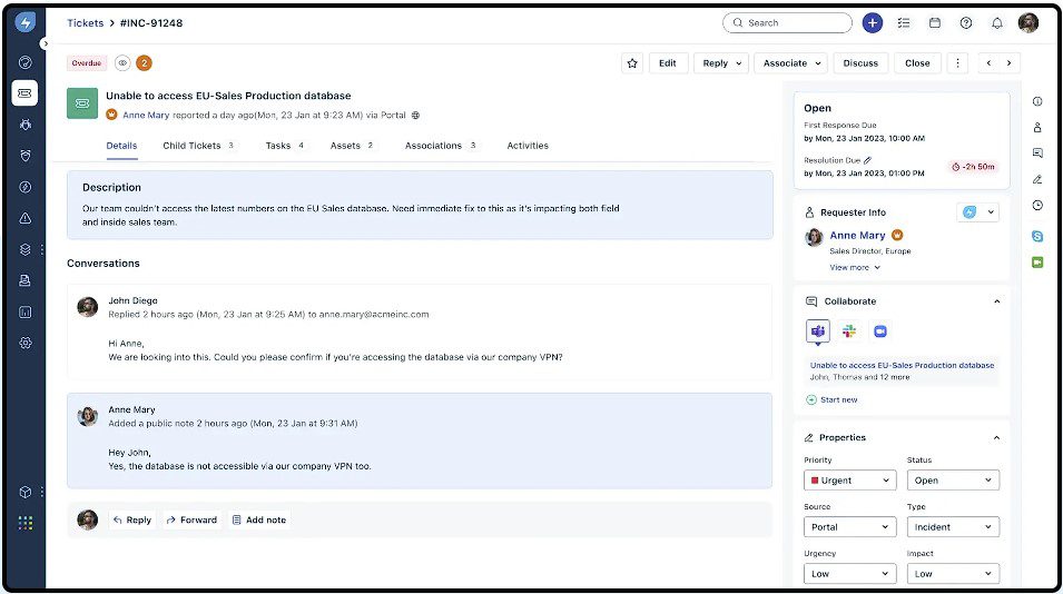 Không giống như quy trình giải quyết yêu cầu một chiều truyền thống, với sự trợ giúp của AI tổng quát, khách hàng có thể tham gia vào trải nghiệm trò chuyện để giải quyết yêu cầu của họ. Trải nghiệm dịch vụ khách hàng có thể được tăng cường với cuộc trò chuyện tự nhiên, phản hồi được cá nhân hóa và đề xuất để giải quyết truy vấn. Các đề xuất hoạt động trên nền tảng AI có thể được tích hợp trong bảng điều khiển bộ phận trợ giúp để cung cấp cho nhân viên các đề xuất bài viết có kiến thức tốt nhất dựa trên các từ khóa từ sự cố được gửi. Ngoài ra, đề xuất vé tương tự cung cấp một danh sách các câu trả lời dựa trên các yêu cầu tương tự, đã được giải quyết. Bảng điều khiển bộ phận trợ giúp sẽ hiển thị những người khác trong nhóm hỗ trợ đang xem và hành động trên yêu cầu trong thời gian thực để tránh xung đột và chồng chéo nhân viên.