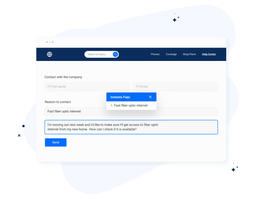 Cổng thông tin tự phục vụ dựa trên AI có thể giúp khách hàng tránh phải chờ đợi hàng giờ hoặc hàng ngày để nhận được phản hồi biểu mẫu web. Khi họ bắt đầu điền vào biểu mẫu web yêu cầu, họ có thể nhận được các giải pháp được cá nhân hóa chỉ trong vài giây trong khi vẫn giữ cho quá trình gửi tương tác và hấp dẫn. AI sẽ tìm kiếm câu trả lời phù hợp và đầy đủ nhất dựa trên ngữ cảnh và dòng chủ đề của khách hàng.