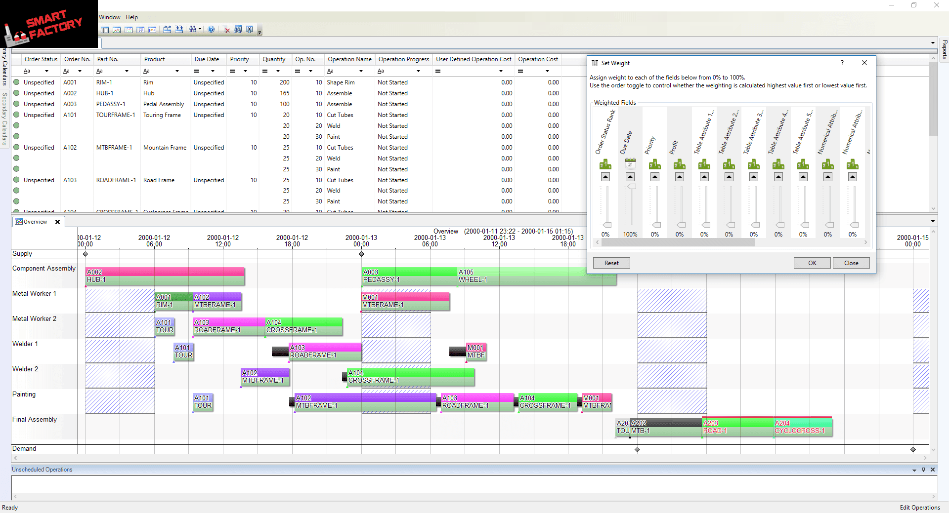 Tối ưu hóa chi phí: Vì một trong những mục tiêu của một giám đốc điều hành là cung cấp dịch vụ khách hàng xuất sắc với chi phí sản xuất tối thiểu, nên việc giới hạn khả năng của nhiều hệ thống ERP là đủ chi phí cho kế hoạch sản xuất hoặc trả lời câu hỏi Có cách nào hiệu quả hơn về chi phí để đạt được kế hoạch không? Luôn luôn có nhiều cách để có thể đạt được một đơn đặt hàng khách hàng nhất định và người ta thường chọn kỹ năng của Planner để chọn cách tốt nhất cho nhà máy. APS hiện đại có thể kết hợp chi phí của tất cả các tuyến đường thay thế để hoàn thành sản xuất. Nhà máy nào? Máy gì? Có nên sử dụng quá giờ? Và cung cấp cho người lập kế hoạch với kế hoạch chi phí thấp nhất. Đôi khi, điều này liên quan đến hàng triệu hoán vị – nhưng điều này gây ra một chút rắc rối cho sức mạnh tính toán có sẵn trong các máy tính để bàn ngày nay.