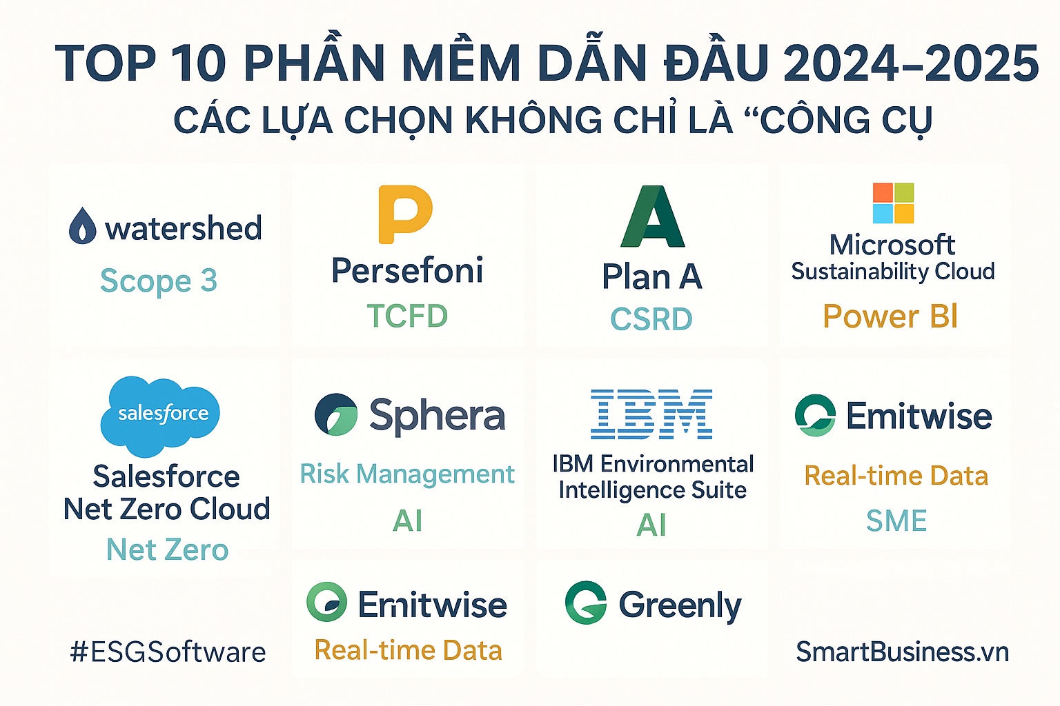 Dưới đây là danh sách 10 phần mềm được đánh giá cao nhất về hiệu quả đo lường – tính linh hoạt – khả năng tích hợp và tầm nhìn ESG: