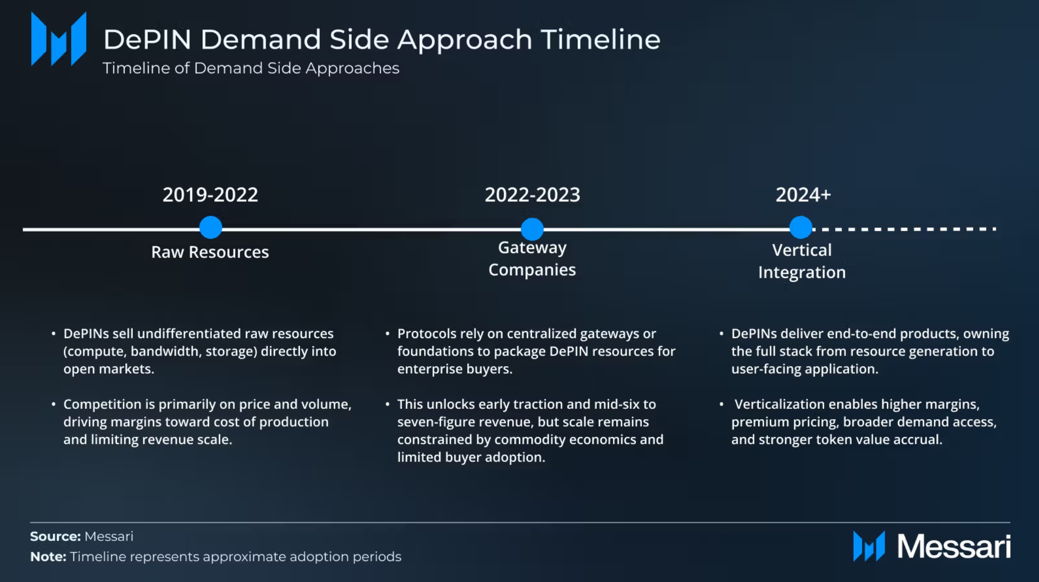 • Tích hợp dọc (Vertical Integration): Các mạng lưới DePIN thành công nhất không còn dừng ở việc cung cấp tài nguyên thô (băng thông, điện, GPU), mà mở rộng sang xây dựng sản phẩm hoàn chỉnh trực tiếp tới người dùng (D2C) để tối ưu biên lợi nhuận và tạo áp lực giá trị trực tiếp lên token.